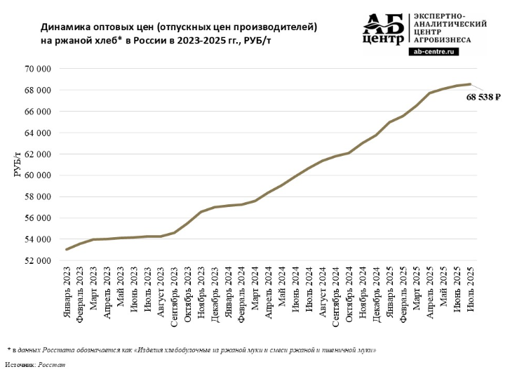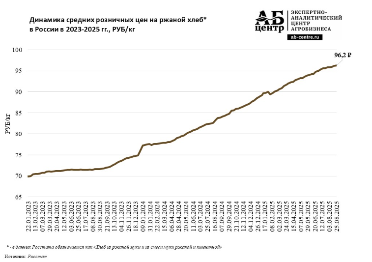 Цены на рожь и продукты её переработки демонстрируют рекордный рост, обусловленный беспрецедентным сокращением предложения. Сборы зерна упали до исторического минимума из-за резкого снижения посевных площадей, вызванного многолетним падением спроса как на фуражную, так и на продовольственную рожь. В результате, как отмечают в АБ-Центр, цены на муку и ржаной хлеб растут опережающими темпами, значительно превышая средний уровень инфляции в стране, и эта тенденция сохранится в ближайшей перспективе.
