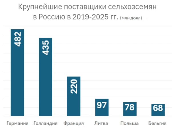 Квоты на поставки семян из недружественных стран в Россию сократились на 18%, если в 2025 году можно было привезти 18,3 тысячи тонн, то в текущем году — только 15 тысяч. В то время как в 2024 году этот показатель составлял целых 33,1 тысячи тонн.